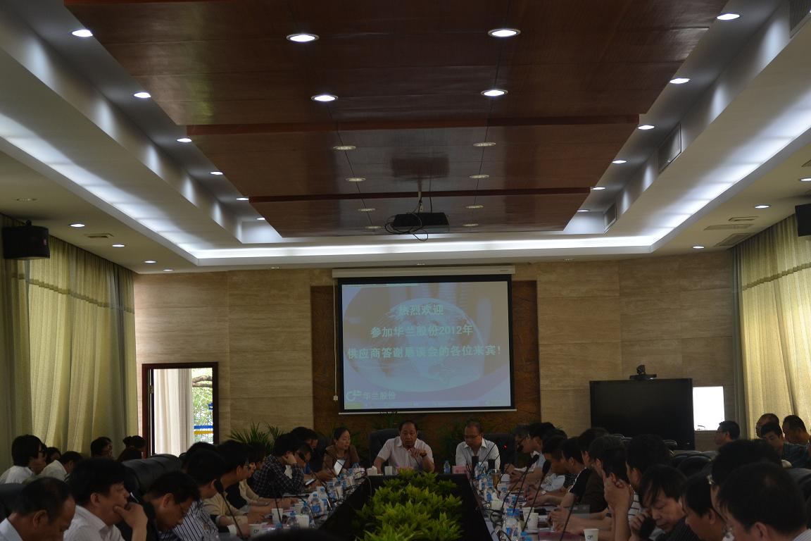5月5日,華蘭股份2012年度供應商答謝懇談會在公司智慧源隆重召開。公司生產部、技術部、質量部、采購部、財務部等相關職能部門領導,和來自全國各地的56位供應商代表出席了會議。