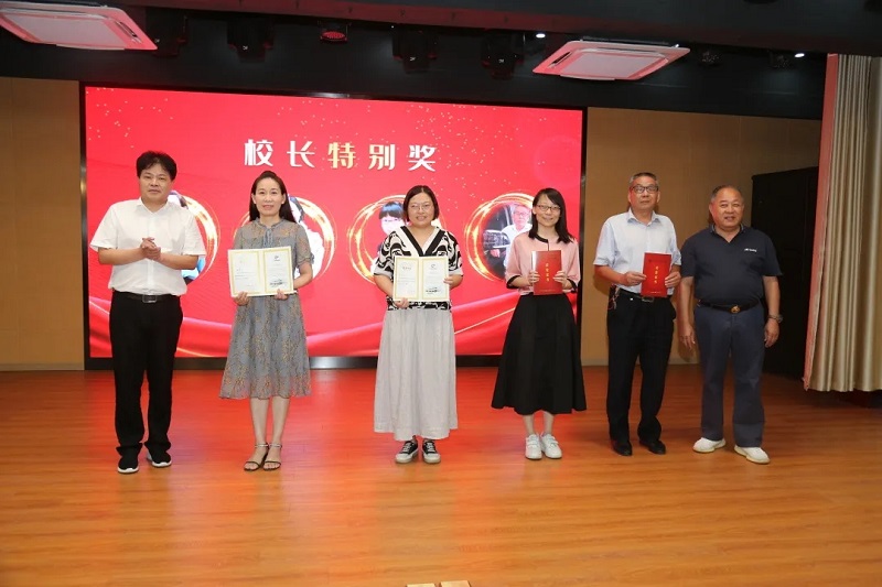 最后李忠校長宣讀“校長特別獎”,江蘇華蘭藥用新材料股份有限公司董事長華國平和李忠校長一同為獲獎老教師們頒發(fā)證書。
