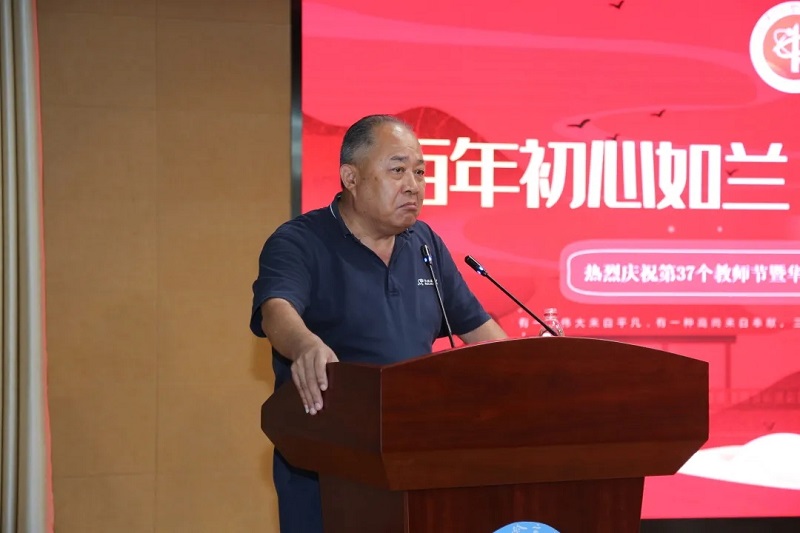 接著華國平董事長上臺,先深深鞠了一躬,表達(dá)對一線教師的敬重和感謝。感謝所有在教育的天地里默默守望的老師們。在講話中尤其是對奮戰(zhàn)在班主任崗位上的老師們由衷的敬意,表達(dá)了對老師們最誠摯的祝福。接著他鼓勵大家做一名有家國情懷的人民教師。企業(yè)需要不斷優(yōu)化產(chǎn)業(yè),增強競爭力,教育更需要每一位教育工作者勤于思考,提高課堂效率,因材施教,提升學(xué)校辦學(xué)品質(zhì)。華國平先生的發(fā)言誠摯而充滿了力量,贏得了領(lǐng)導(dǎo)、老師們熱烈的掌聲。